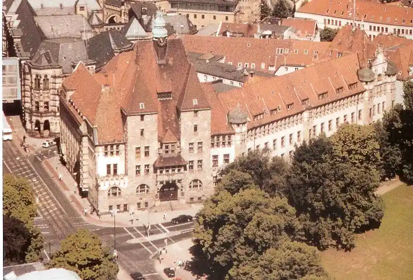 Die Bild zeigt die Vogelperspektive des ehemaligen Polizeihauses Am Wall